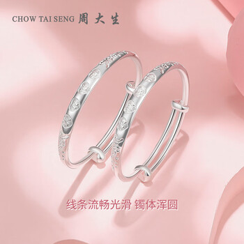 周大生【生日礼物】幸福宝贝足银手镯一对镯子送宝宝满月周岁礼物约20g