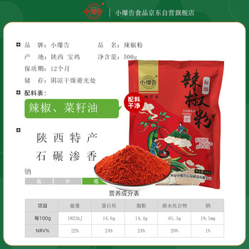 小爆告 辣椒面标细粉500g袋装陕西特产秦椒石碾油泼辣子面辣椒粉香辛料