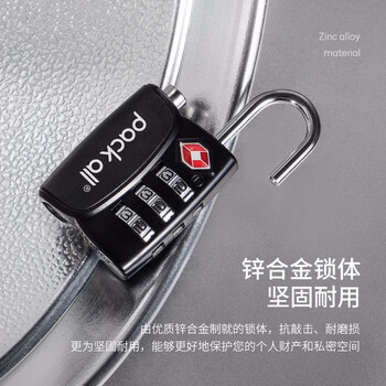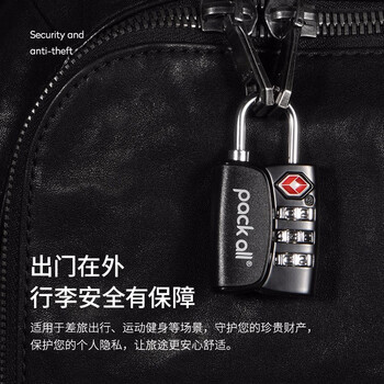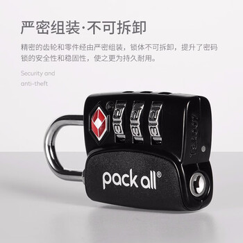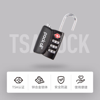 pack all旅行密码锁三键TSA锁旅行拉杆箱防盗锁密码门锁背包挂锁 黑色