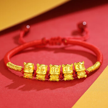 Lossot生日礼物本命年十二生肖马足金五福马黄金转运珠手链5D硬金马