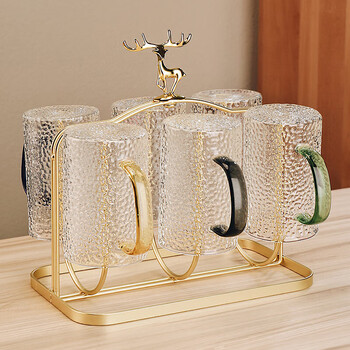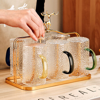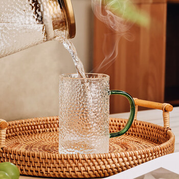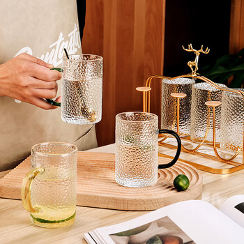 格娜斯 日式锤纹玻璃杯带把手水杯家庭套装家用待客茶杯高颜值喝水杯子