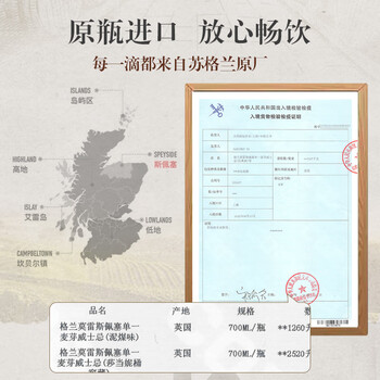 格兰莫雷(Glen Moray)经典 泥煤味 斯佩塞 单一麦芽 威士忌 700ml×1