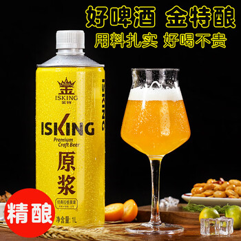 金特(ISKING)精酿原浆黄啤酒1L*8桶整箱礼盒装全麦清爽拉格青岛特产踏春送礼