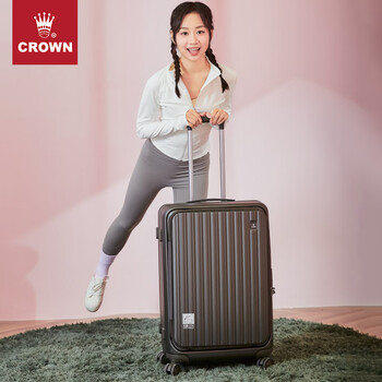 皇冠(CROWN)拉链铝框箱行李箱大容量万向轮侧开旅行箱暑期出游箱5278-28-铁灰