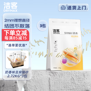 洁客(Drymax)植物环保结团猫砂奶香味豆腐砂2.72kg*3袋