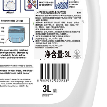 威露士 抗菌有氧洗衣液柠檬3L *2瓶装