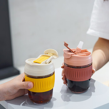 乐扣乐扣 手持咖啡杯玻璃杯便携式吸管杯随手杯杯茶水杯子350ML绿色