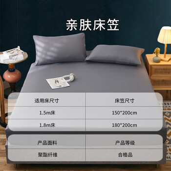 艾薇 A类学生床笠单件单人防滑床罩防尘磨毛床笠 适用1.2m床 极速灰