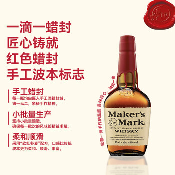 美格(MAKER'S MARK BOURBON)调和型威士忌 美国肯塔基州 洋酒 750ml