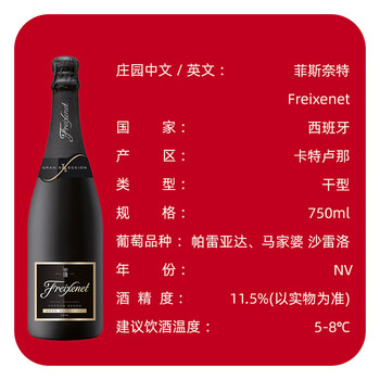 菲斯奈特黑牌干型起泡葡萄酒 750ml单瓶 西班牙 聚会 热门商品