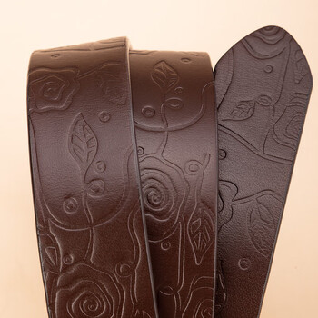 牛当家皮带女牛皮女士复古雕花针扣腰带女百搭裤带5333 深咖色 105cm