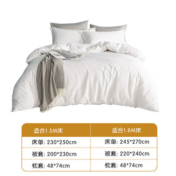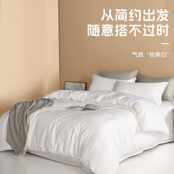 然牌 白色四件套 纯白酒店床上用品 100%纯棉床单被套枕套 支持定制 1.5米床 被套200*230cm