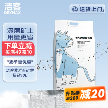 洁客(Drymax)紫岩石快速结团矿物猫砂10L*1袋