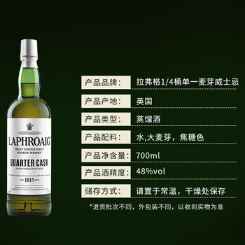 拉弗格(Laphroaig)四分之一桶单一麦芽700ml礼盒苏格兰艾雷岛威士忌洋酒