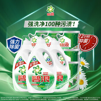 碧浪除菌洗衣液20斤装(3kg*3瓶自然清新+200g*5袋草本清新)家庭装
