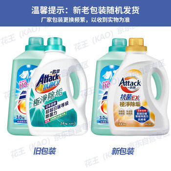 花王(KAO)抗菌去渍洗衣液家庭装3kg+2.4kg 制菌除味去污消臭极速洁净