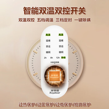 荣事达【高温断电】双人除螨定时双控加厚棉布电热毯电褥子1.8*1.5米