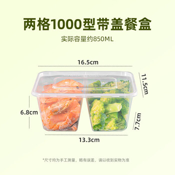 一次性长方两格带盖餐盒1000ml*50/套透明