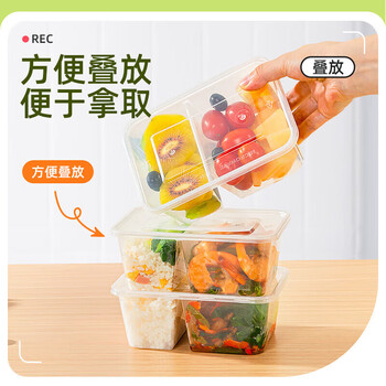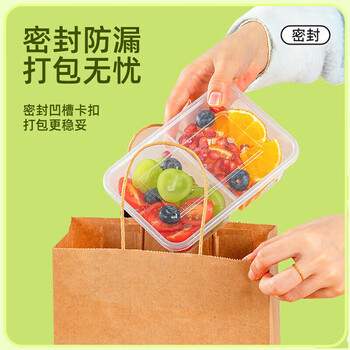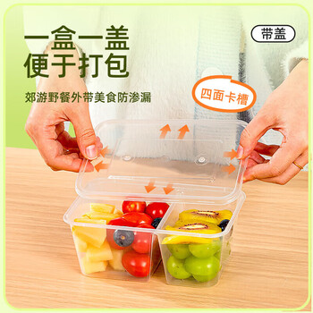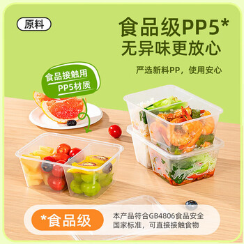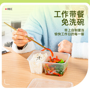 特美居(temeiju)一次性饭盒透明塑料两格餐盒加厚带盖打包盒餐具50套1000型可微波