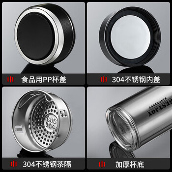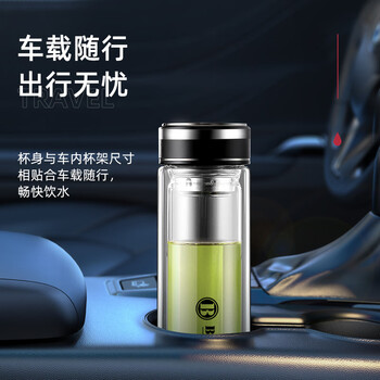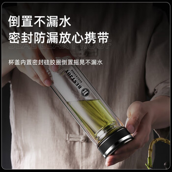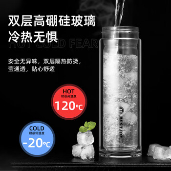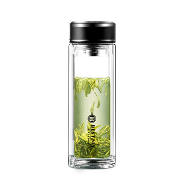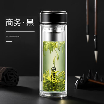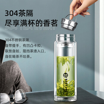 富光拾喜双层玻璃水杯便携家用茶杯男女士商务办公带过滤杯子320ml 本色