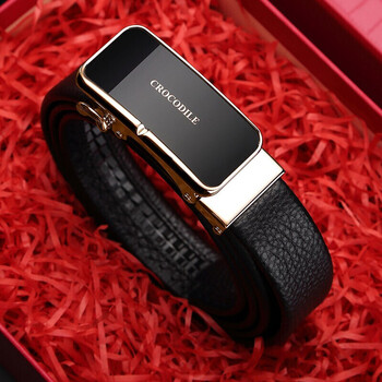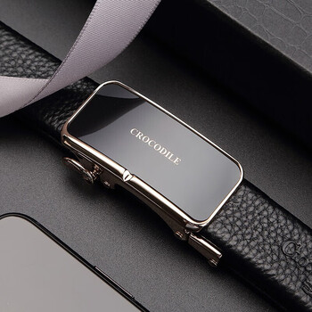鳄鱼恤头层牛皮女士自动扣腰带商务皮带生日礼物送女友T1561黑色