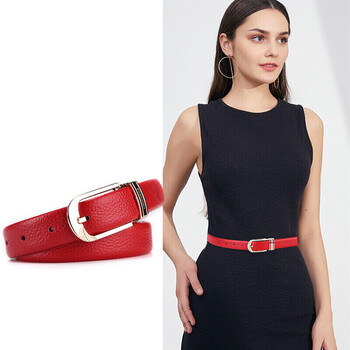 鳄鱼恤本命年头层牛皮女士腰带休闲针扣皮带生日礼物送女友11609红色
