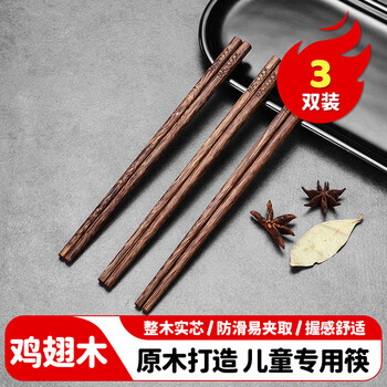 美厨(maxcook)筷子 天然家用无漆无蜡鸡翅木筷子实木筷子 儿童筷3双装MCK3820