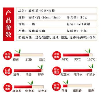 武夷星乌龙茶茗词武夷山岩茶肉桂醇香一级50g罐装年货节日送礼自饮茶叶