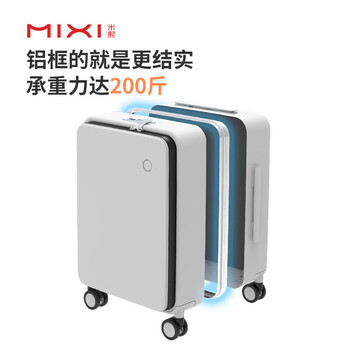 米熙前开盖拉杆箱子行李箱大容量旅行箱女密码箱包登机箱20英寸烟白60