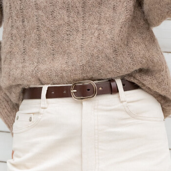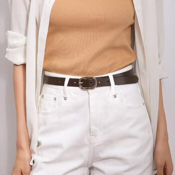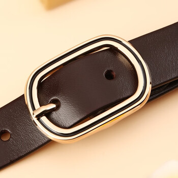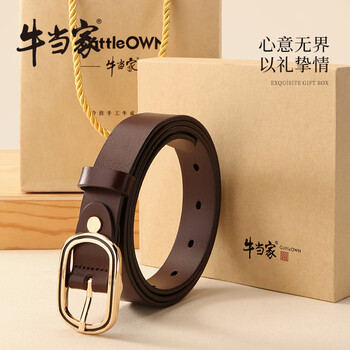 牛当家皮带女头层牛皮圆扣装饰细腰带女简约时尚百搭5316 深咖色 105cm