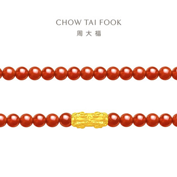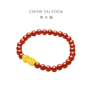 周大福双头福字貔貅黄金玉髓弹力绳手链/手串 EOR107