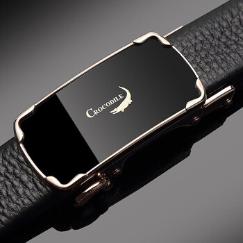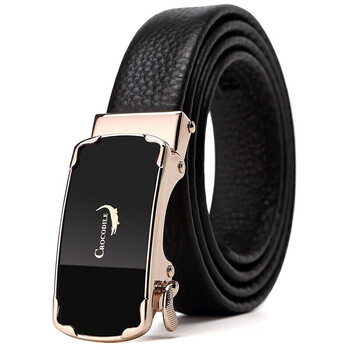 鳄鱼恤商务女士自动扣头层牛皮腰带皮带生日礼物送女友DT256黑色