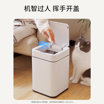 EKO智能感应垃圾桶10L灰钢家用大号不锈钢卫生间厨房张若昀推荐9208