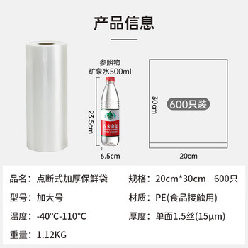 宜之选商用食品保鲜袋20cm*30cm*600只*1卷
