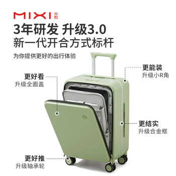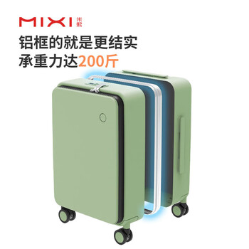 米熙前开盖拉杆箱子行李箱大容量密码铝框箱女旅行箱20英寸牛油果绿60