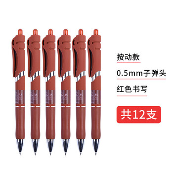 晨光12支装0.5mm红色按动签字笔AGPK3507 金品签字笔K-35