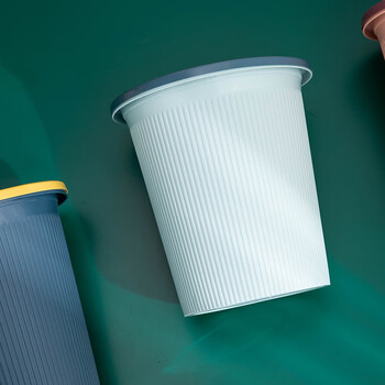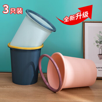 妙然带压圈垃圾桶3个装7L无盖垃圾篓客厅卧室厨房时尚条纹颜色随机
