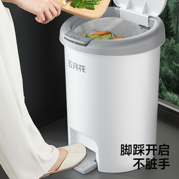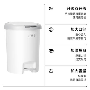 五月花手按脚踏垃圾桶8L带盖锁味双开盖宿舍酒店办公室家用厨房客厅纸篓