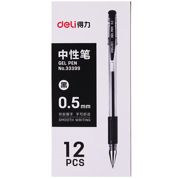 得力(deli)33399中性笔0.5签字笔 办公用品黑色水笔 12支【ZY】
