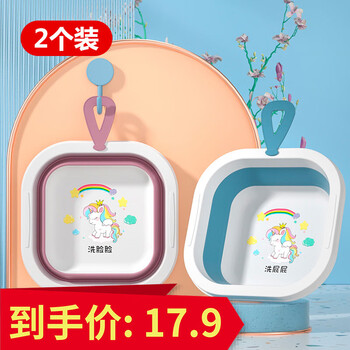 ESIKIN可折叠宝宝洗脸盆28cm2个装儿童新生儿洗脚盆 挂钩脸盆
