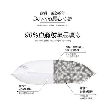Downia澳洲枕芯 全棉五星级酒店豪华羽绒枕 90%白鹅绒单层枕头 74*48CM