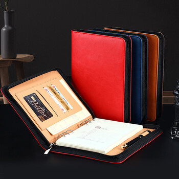 嘉然恒 a5商务活页笔记本子多功能拉链包式记事本可拆卸替换内芯25K简约会议记录本工作日记本可定制 红色