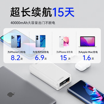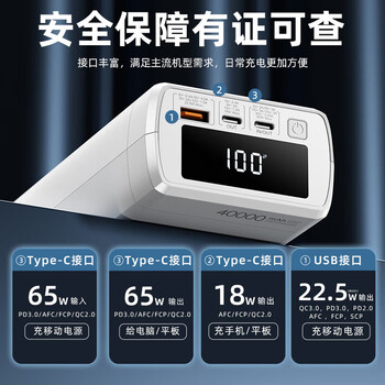 睿量(REMAX)睿量 充电宝65W快充40000mAh大容量移动电源便携户外电源适用于小米华为 白 RPP-310