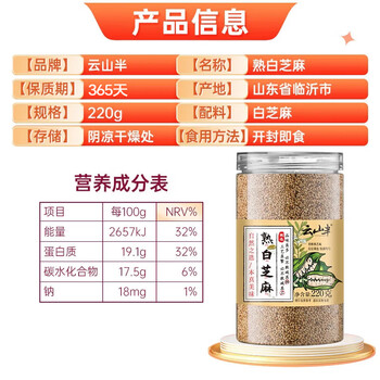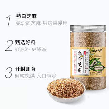云山半熟白芝麻粒220g无添加低温炒制开罐即食免洗五谷杂粮糕点烘焙原料