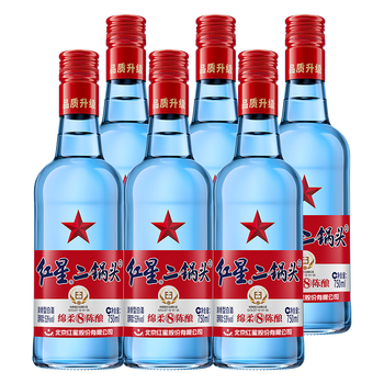 红星 蓝瓶二锅头 绵柔8陈酿 53度 750ml*6瓶