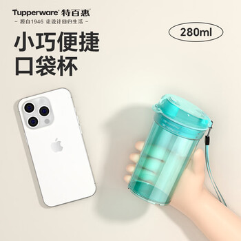 特百惠(Tupperware)晶彩mini塑料杯280ML 男女学生夏季水杯子儿童双饮口便携 碧海蓝