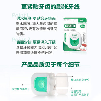 日本GUM康齿家 牙周护理膨胀牙线(含蜡)40m *2
