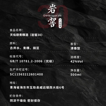 天佑德青稞酒(岩窖30)清香型42度500ml*4瓶(内含2个礼品袋)