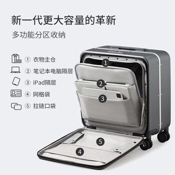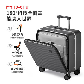 米熙前开盖商务铝框拉杆箱子男行李箱女密码箱包登机箱18英寸矿岩灰70