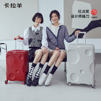 卡拉羊芝士箱防刮纯PC行李箱24英寸大容量女拉杆箱男旅行箱8109玉白色